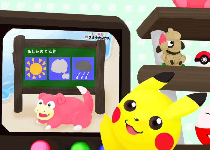 * お天気チャンネル * 「ピカ、ピカピカ、チャァー!」 『天』を探し出したピカチュウは得意気にテレビを指差した。(ポケモンチャンネルより)